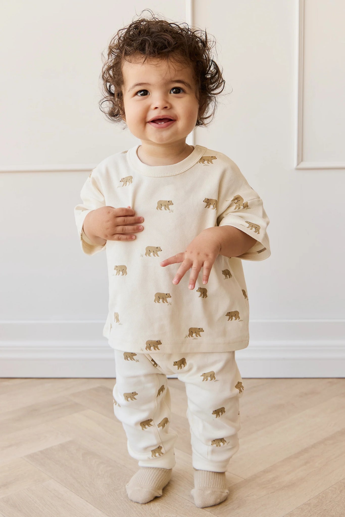 The Wesley Pant in Cub Walk Samoyed is a charming essential for your little explorer. Featuring a relaxed fit and soft elasticated waistband, these pants are adorned with a cute bear motif on a gentle vanilla cream base – perfect for everyday comfort with a touch of imagination.