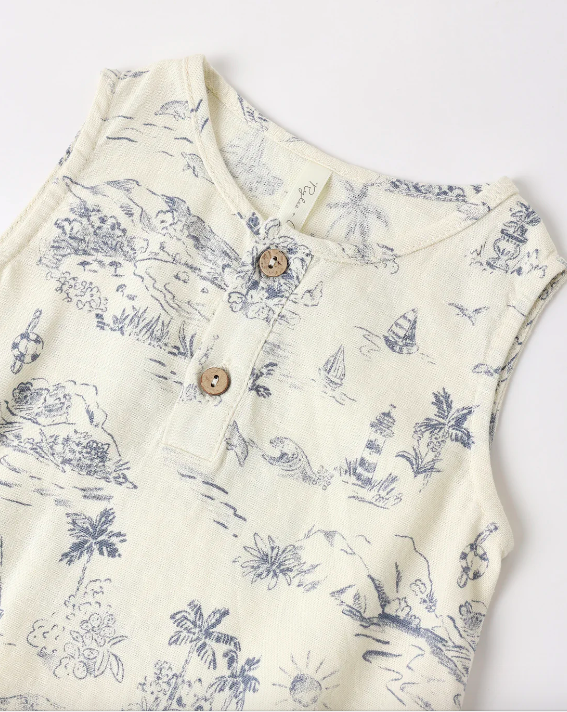 Our Beau Romper is the perfect summer outfit for your little one. This romper features a button placket on the chest and bottom snaps for easy changing.