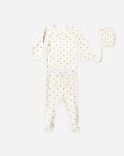 Dino Applique Baby Knit Overall Set - Oatmeal Heather