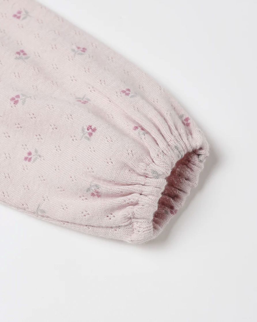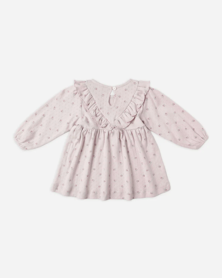 This long sleeve dress in our classic pointelle fabric features delicate V-ruffle detail, a button-back closure for easy changing, and matching bloomers for a sweet finishing touch.