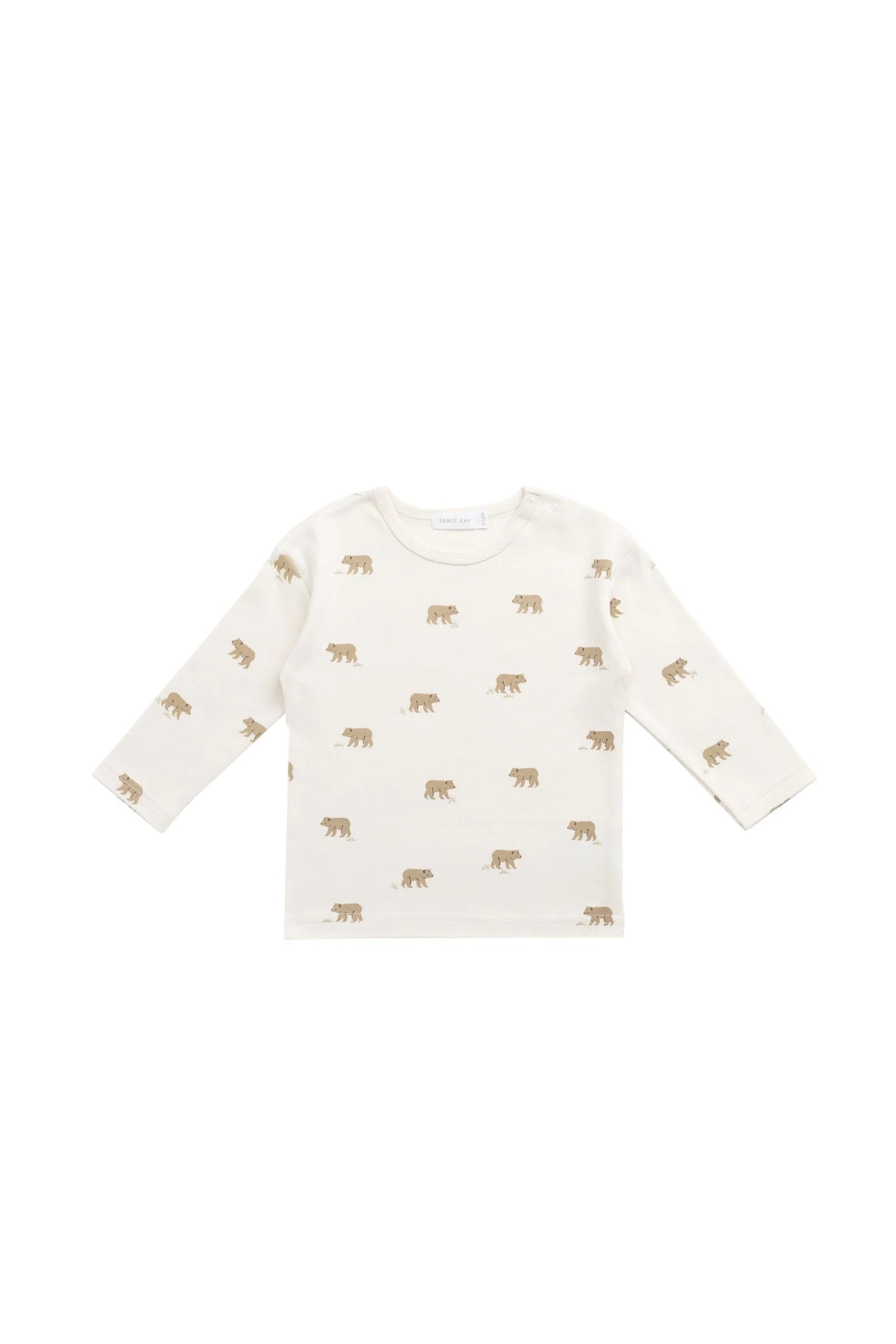 A soft and playful essential for your little one, the Arnold Long Sleeve Top in Cub Walk Samoyed features a cream base with an all-over print of light brown bear cubs in gentle walking poses. With a classic round neckline and long sleeves, this top is perfect for layering or wearing solo on cooler days.