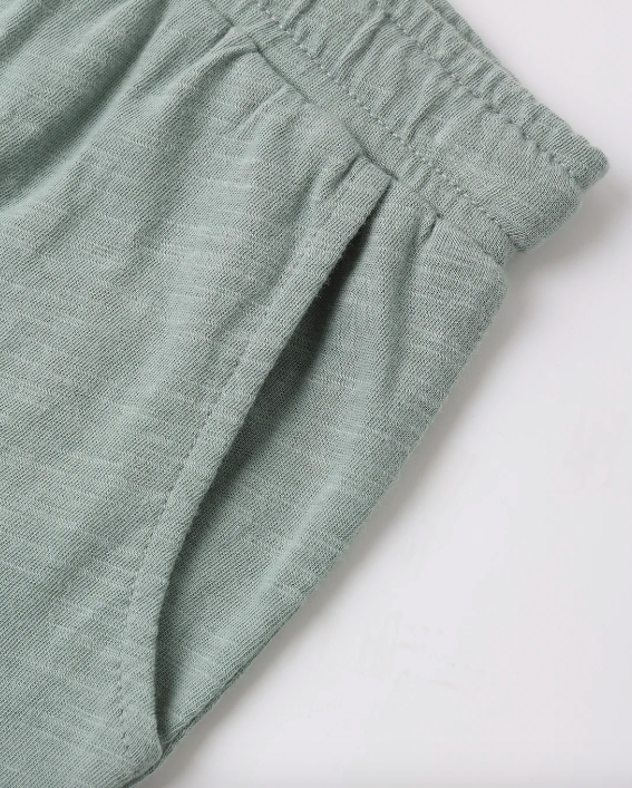 These cozy shorts feature side pockets, elastic waistband with faux drawstring.