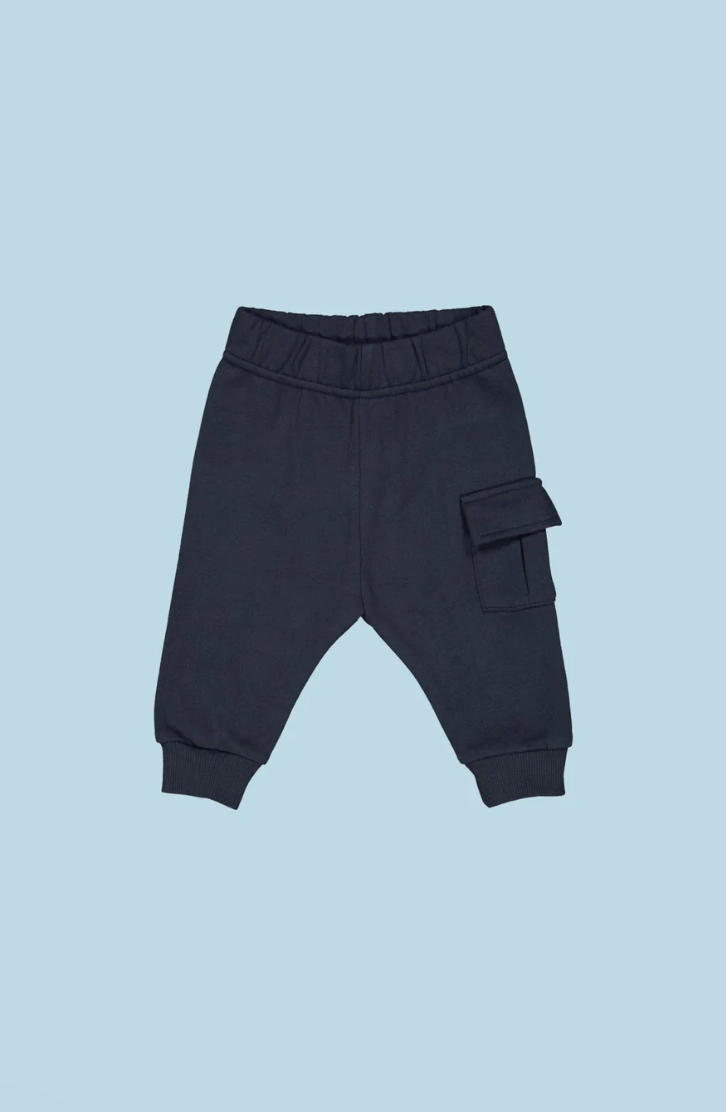 Cool, comfy, and pocket-packed! The Night Blue Cargo Sweatpants by Musli are made from soft cotton with an easy elastic waist and side pockets ready for treasures. 100% unbrushed cotton = 100% chill.