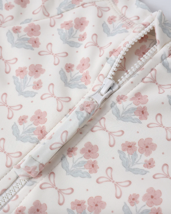 Our Delphine Rashguard One-Piece swimsuit will have your little one protected from the sun in style. Designed with a zipper back closure for easy wear.