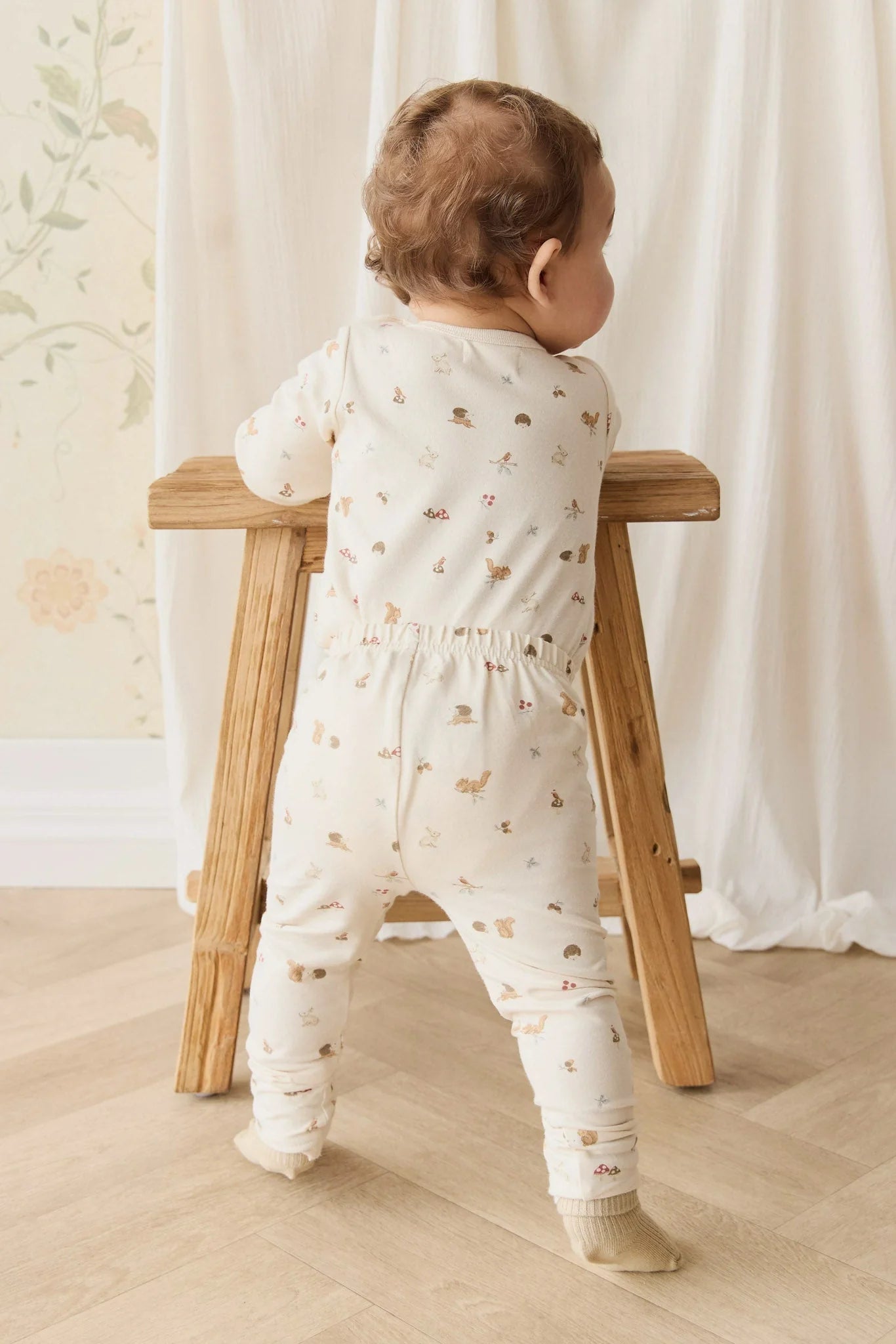 Wrap your little one in softness and woodland charm with the Fernley Bodysuit in Forest Gathering. Featuring a gentle beige base adorned with a whimsical print of tiny rabbits, hedgehogs, and mushrooms, this bodysuit is perfect for layering or wearing solo throughout the seasons.