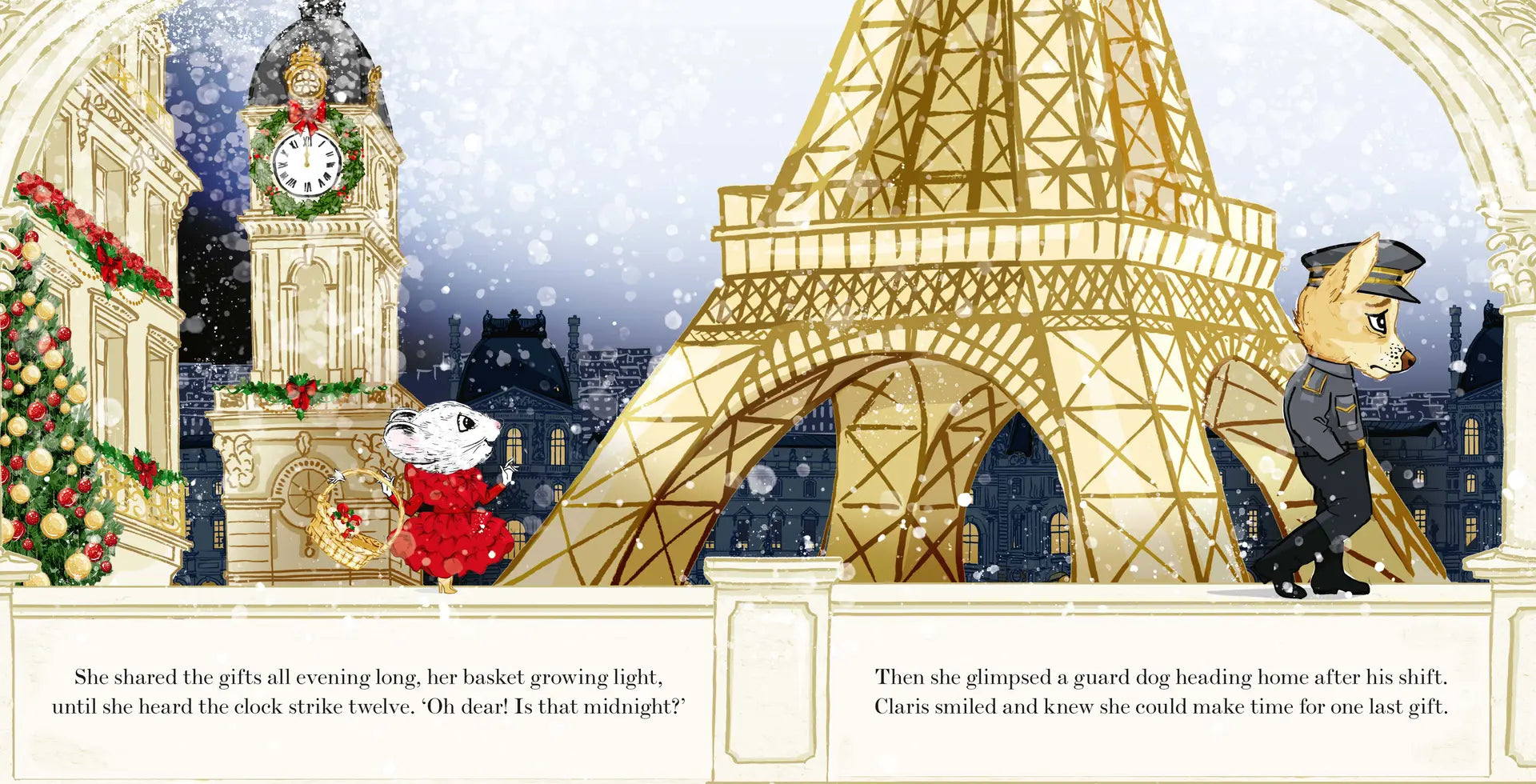 As the snow falls over Paris, Claris is busy baking sugar cookies and teeny-tiny cakes. But who are all these special gifts for? It's a Christmas surprise, of course!