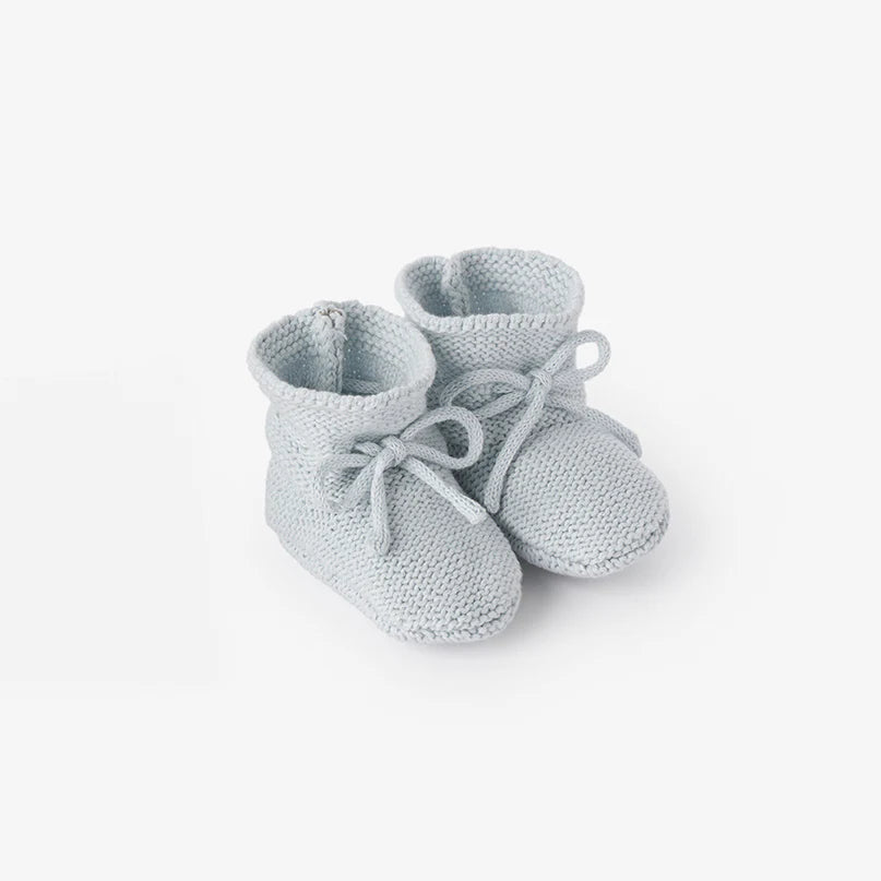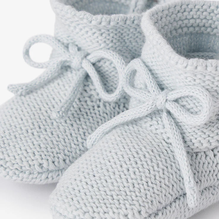 These comfortable hand-crocheted booties are the perfect, soft-sided shoe for every little one's tiny toes. The soft knitting feels dreamy on those sensitive baby feet. These adorable, cotton garter knit booties blend fashion and comfort for every little adventurer.