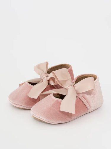 Velvet Ribbon Bow Baby Shoe - Dusty Pink