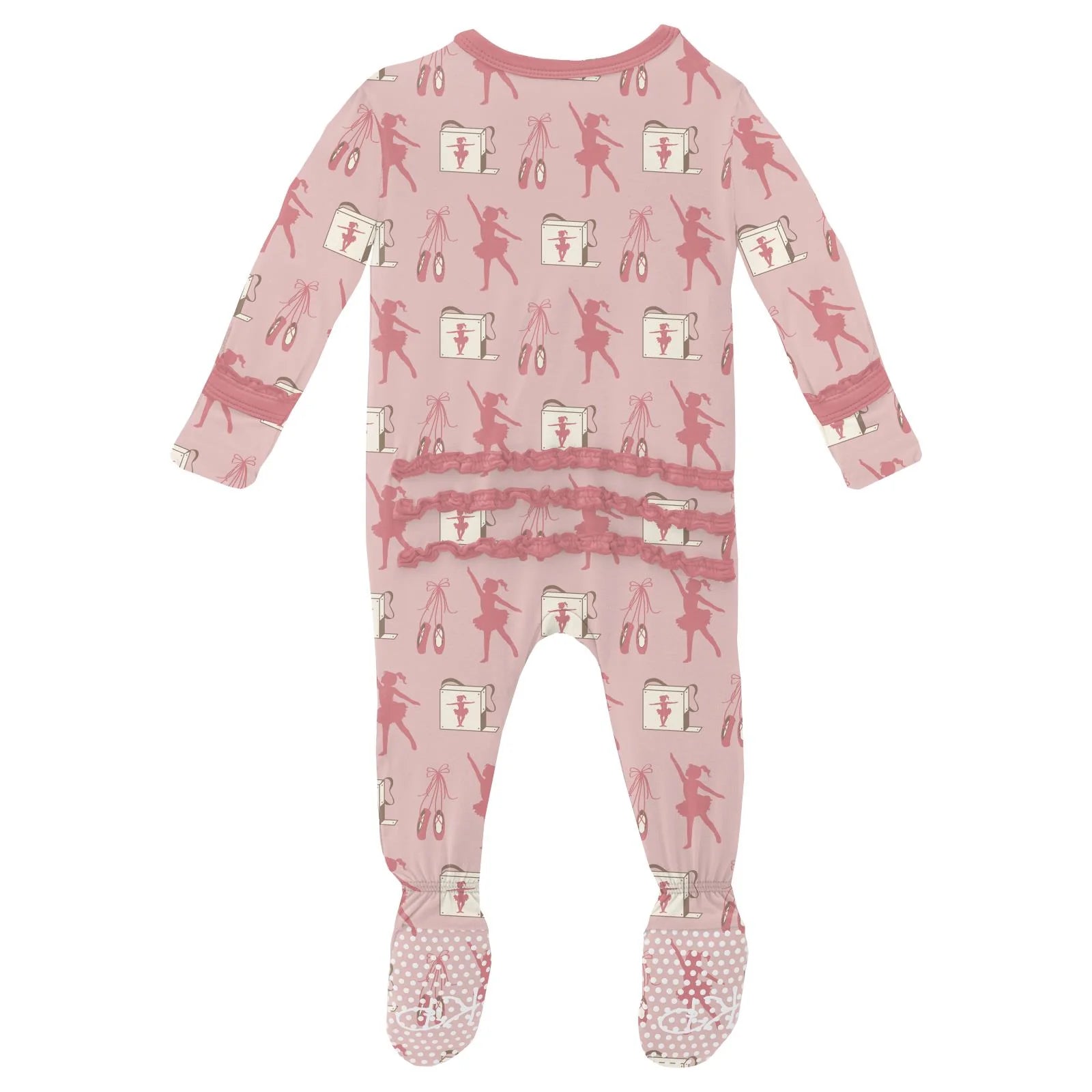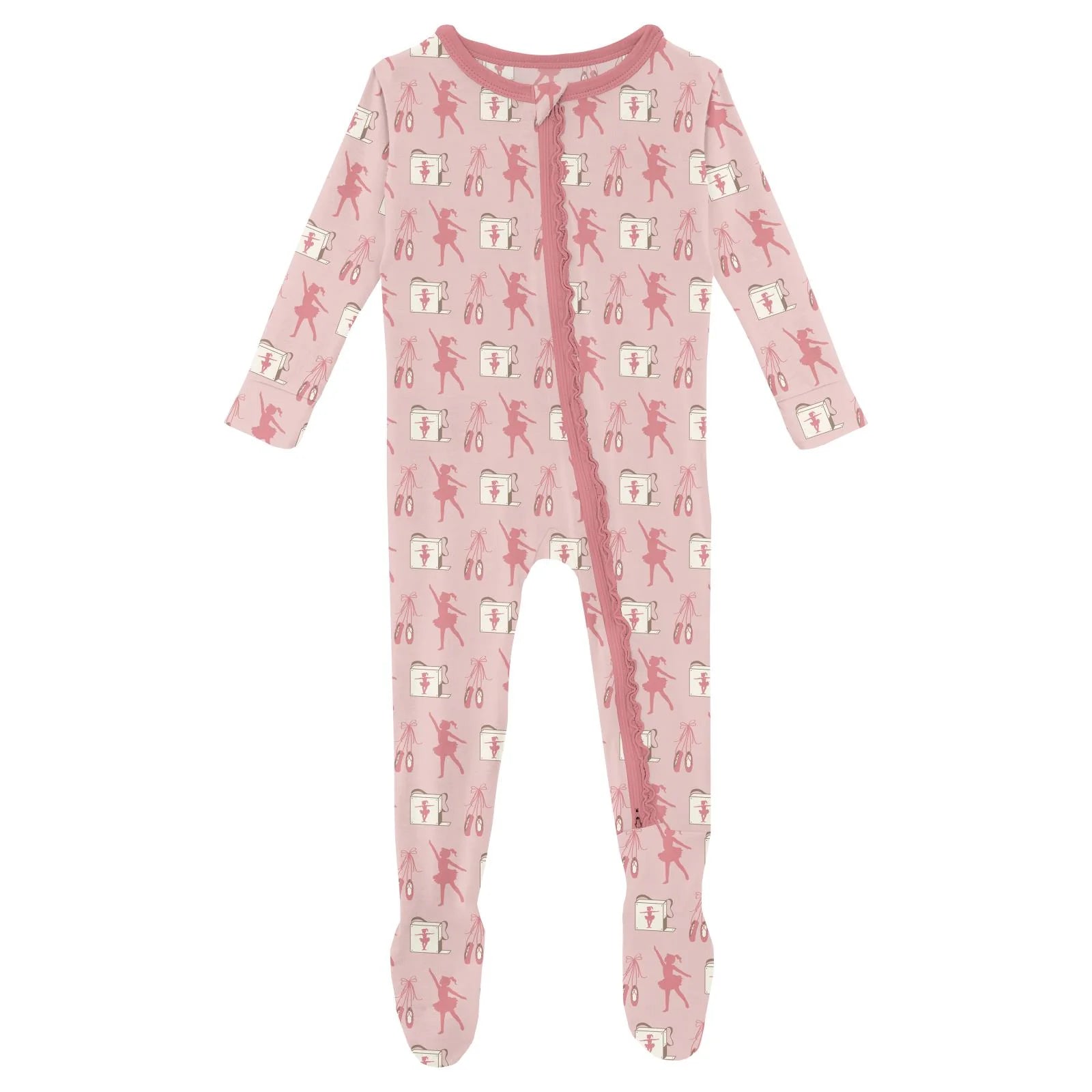 Print Muffin Ruffle Footie With 2 Way Zipper - Baby Rose Ballet Dancer
