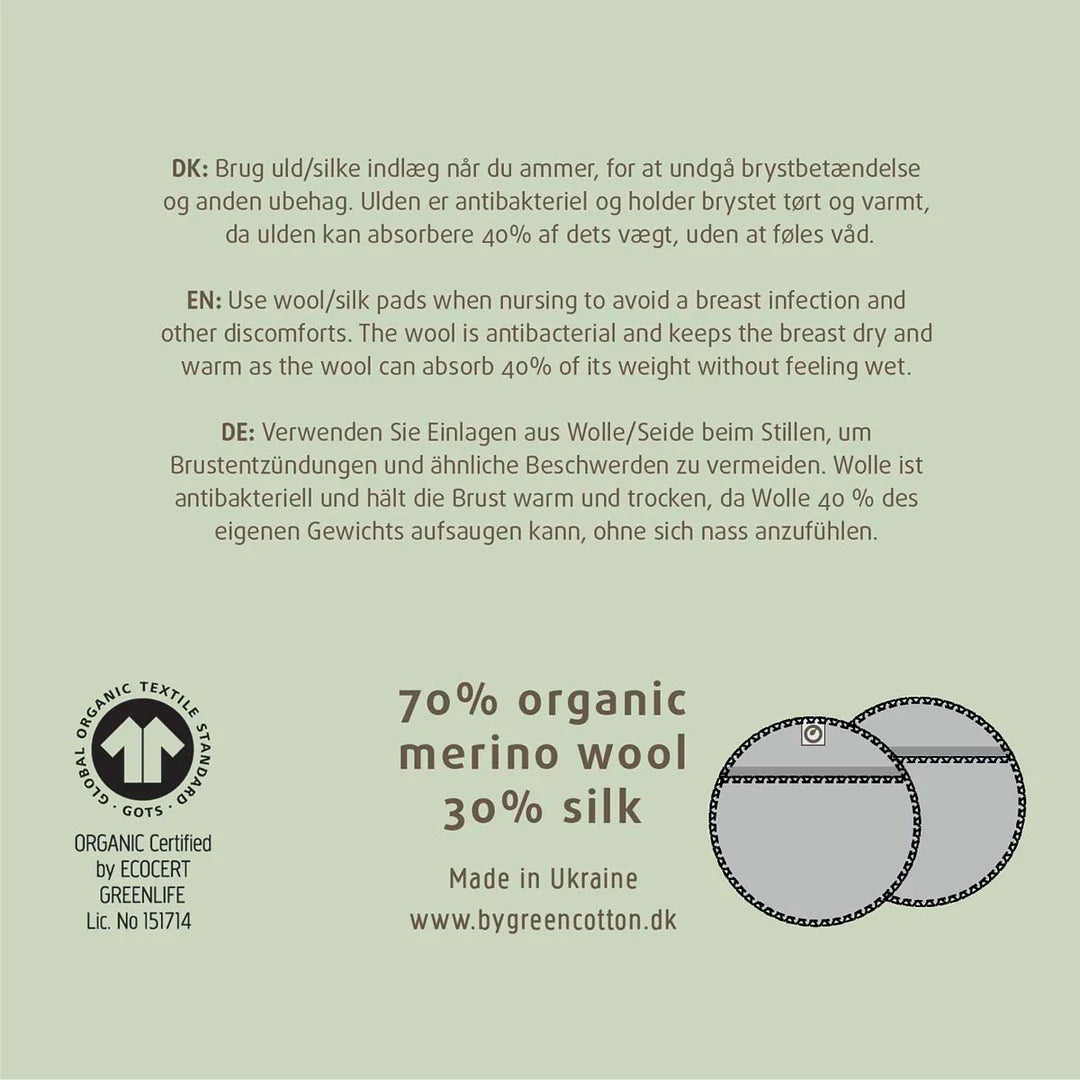 Lovely and indispensable nursing pads in the softest merino wool and silke mix.