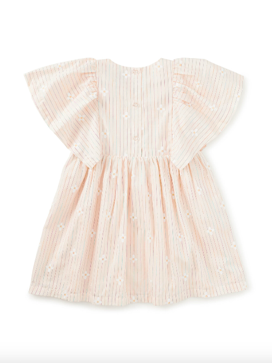 Made for moments worth remembering, this Butterfly Sleeve Twirl Dress is a standout for celebrations and special gatherings. Airy butterfly sleeves and a softly gathered skirt create a graceful, party-ready silhouette, while the fully lined construction gives it a beautiful, polished drape. Delicate rainbow lurex stripes are woven throughout the fabric, catching the light with a subtle shimmer, and scattered white florals add an extra layer of charm and dimension. Thoughtful details like on-seam pockets and a center back button placket balance beauty with practicality. Designed to feel festive yet timeless, this is a dress to treasure--perfect for holidays, parties, and milestone moments, and lovely enough to wear again and pass along.
