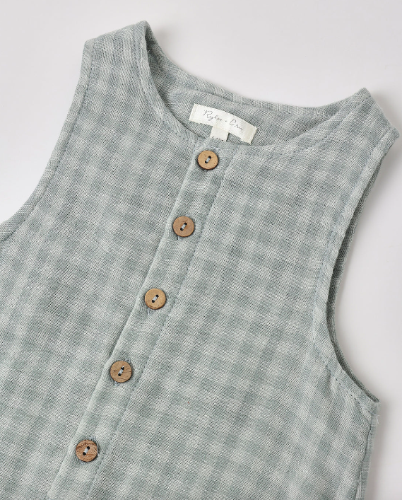 Our lightweight sleeveless one-piece jumpsuit with a coconut button placket makes this outfit a breeze.