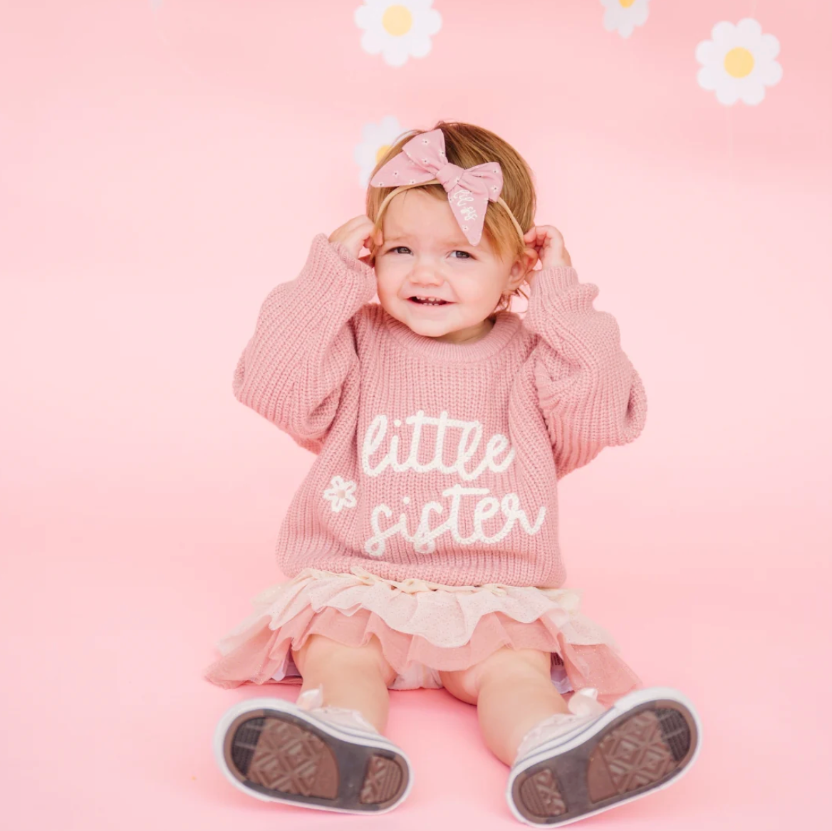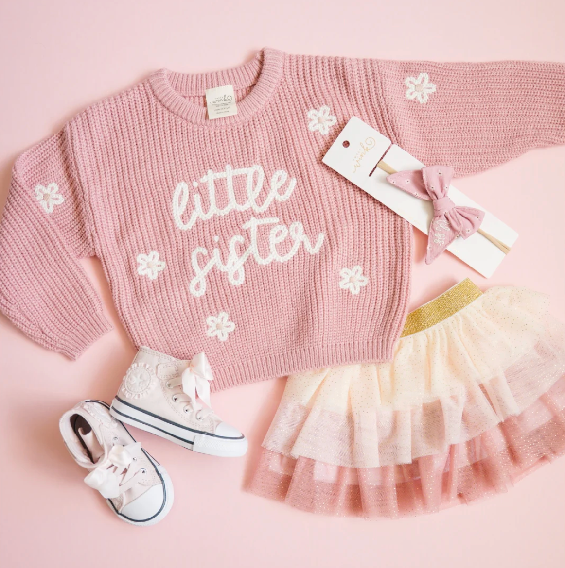 The Little Sister Knit Sweater is a fun and cute sweater for any girl who's a little sister or for the perfect photo op!
