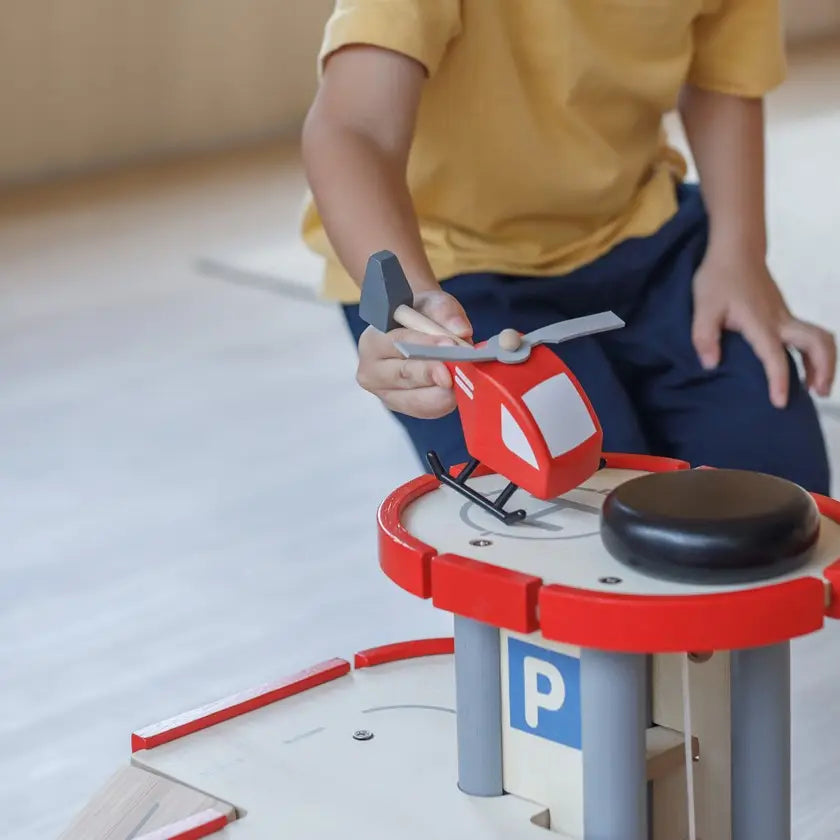 Enhance your pretend-play transportation system with the PlanToys Helicopter! This Helicopter encourages children to explore open-ended pretend play as their imagination takes the driver's seat. Children will Improve language and communication skills by incorporating the toy into any free-play environment! The helicopter comes with a fire hydrant red finish and is made sustainably in Thailand.