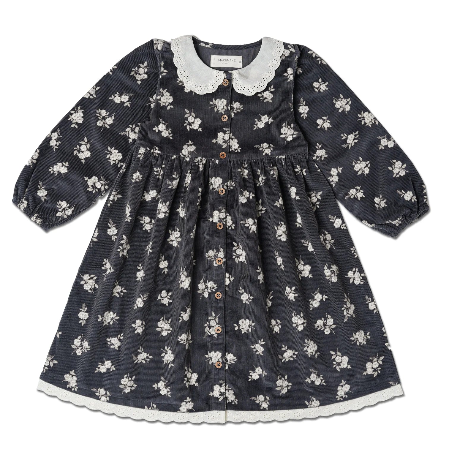 Organic Corduroy Collared Button Dress - Navy Bloom