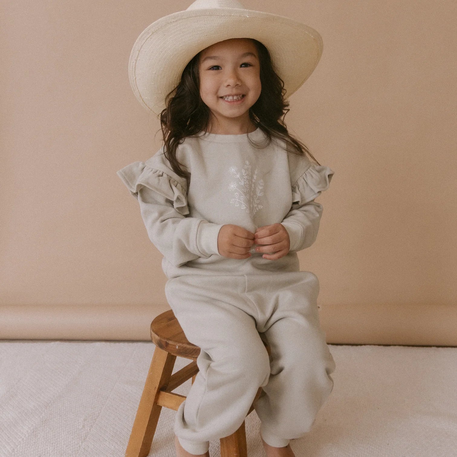 Our Organic Fleece Ruffle Sleeve Sweatshirt is the perfect mix of cozy and cute. Featuring soft fleece for ultimate warmth and playful ruffle sleeves, this sweatshirt adds a fun twist to your little one's casual wardrobe. Whether for lounging or a casual outing, it’s sure to be a favorite for both comfort and style.