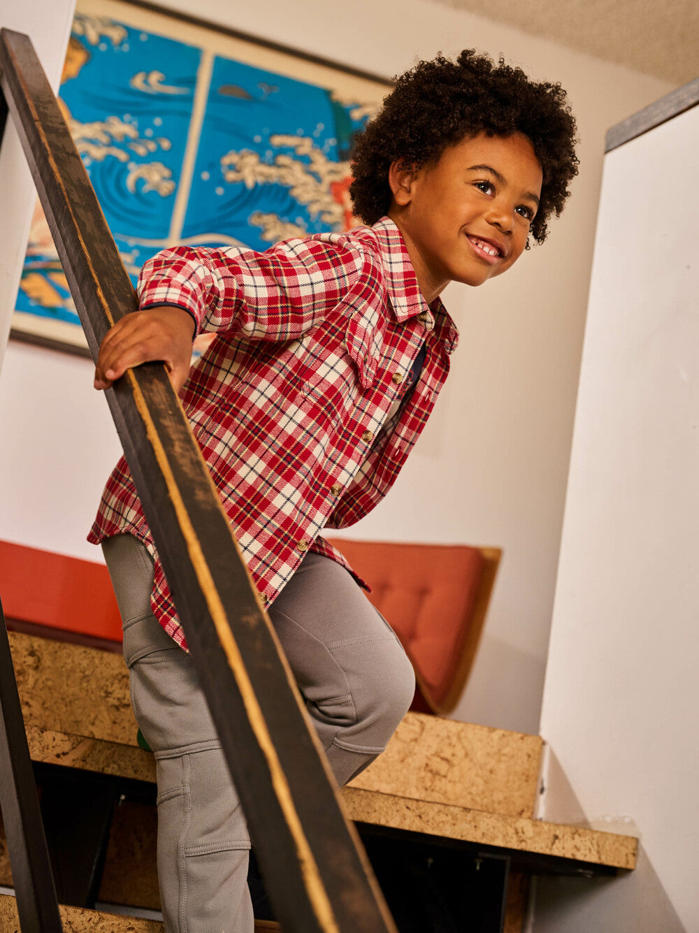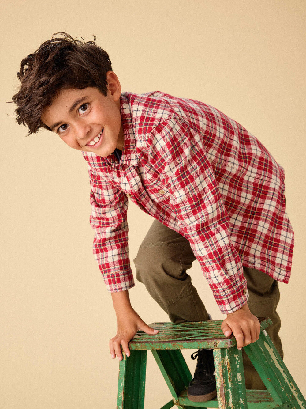This classic flannel button-up is designed to shine as a layering piece or worn buttoned-up for a more polished look. With its timeless plaid design and soft 100% cotton fabric, it's an easy go-to for cooler weather. Functional details like chest patch pockets, a center front placket, and a back neck locker loop add practicality, while the standard fit ensures comfort throughout the day. Ideal for layering over tees or under jackets for versatile styling.