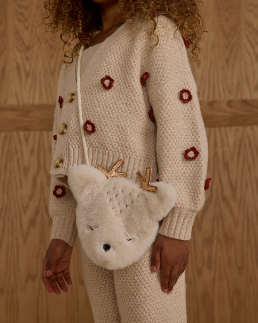 Our new deer purse will add a touch of cuteness to your little one's outfit. Includes a zipper closure.