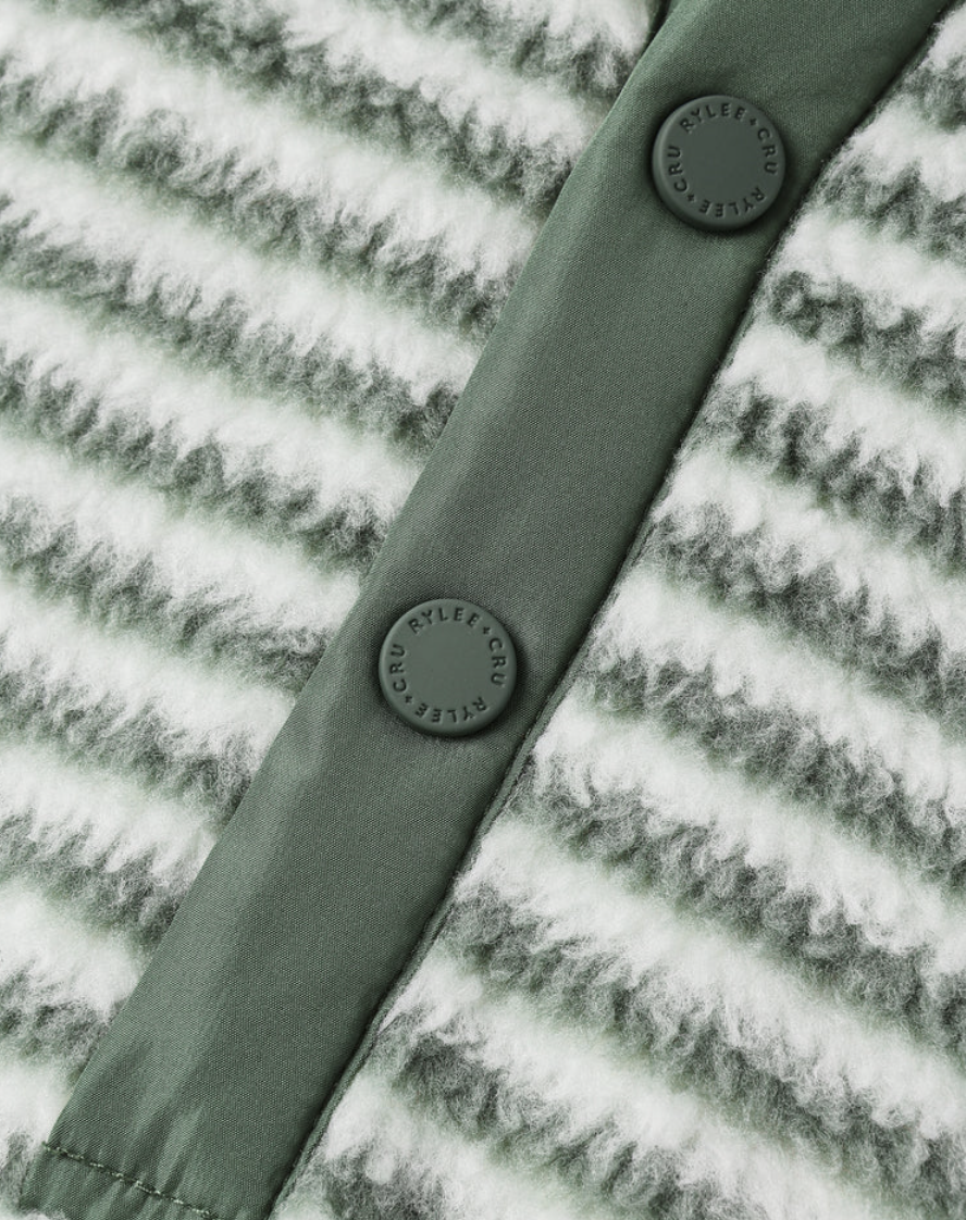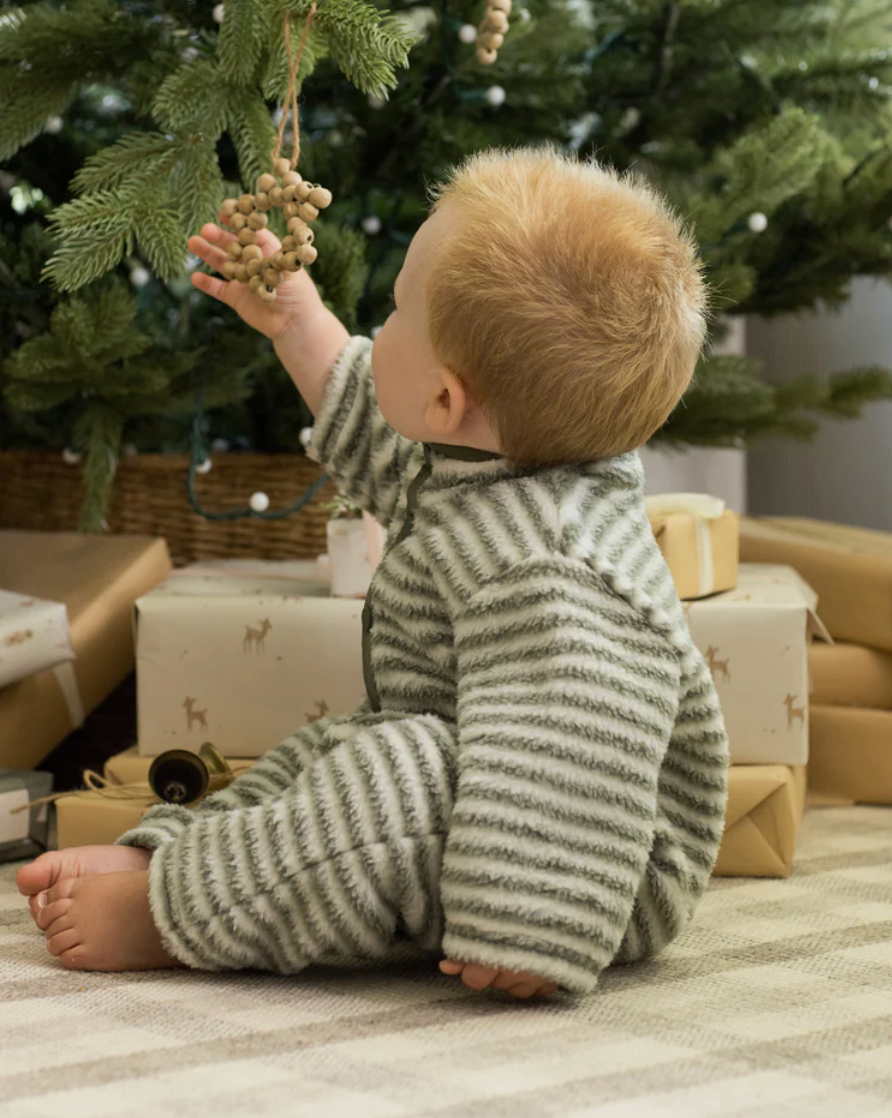 Fuzzy jumpsuit featuring a snap button placket at the front and snaps along the inseam for a cozy winter jumpsuit!